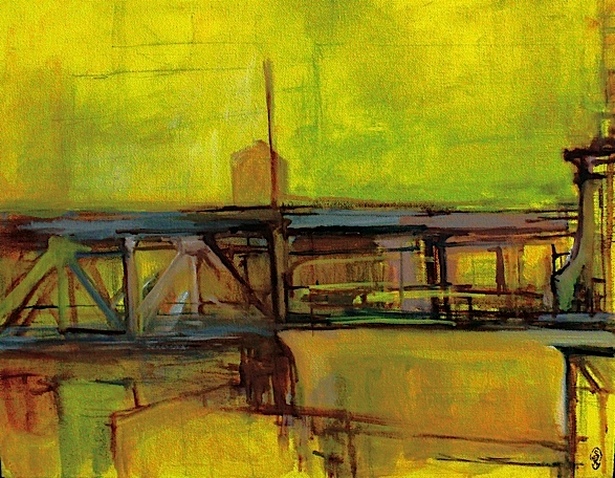 Light on the Manhattan Bridge, 2004, oil on canvas, 14 x 18 in (35 x 45.5 cm )