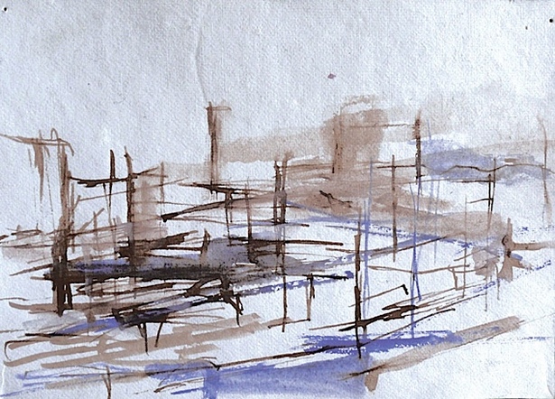 City Geometry, watercolor and ink on paper, 8.5 x 6 in ( 21.5 x 15 cm )