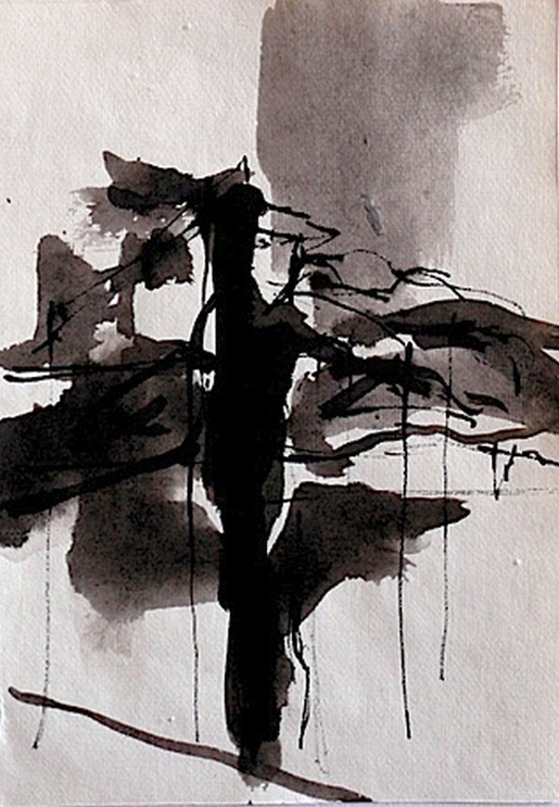 Tree, sumi ink on paper, 8.5 x 6 ( 21.5 x 15 cm )